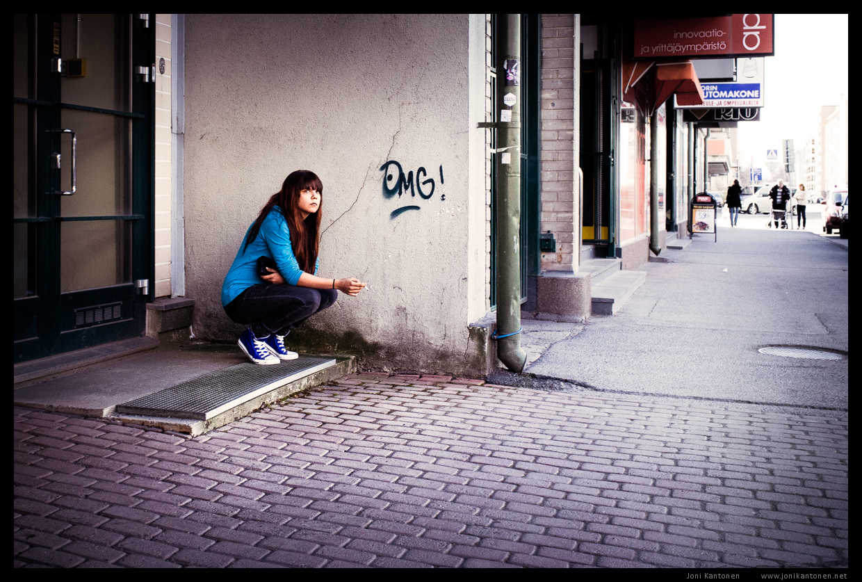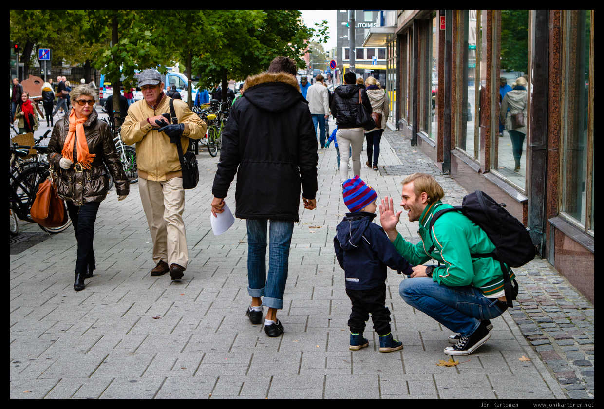 Uudempia katuvalokuvia, joista moni on otettu 365 - kuva päivässä -projektini yhteydessä. Katuvalokuvaus on mielestäni jalo valokuvauksen laji, sillä siinä tärkeintä on valokuvan ajoitus ja sommittelu.